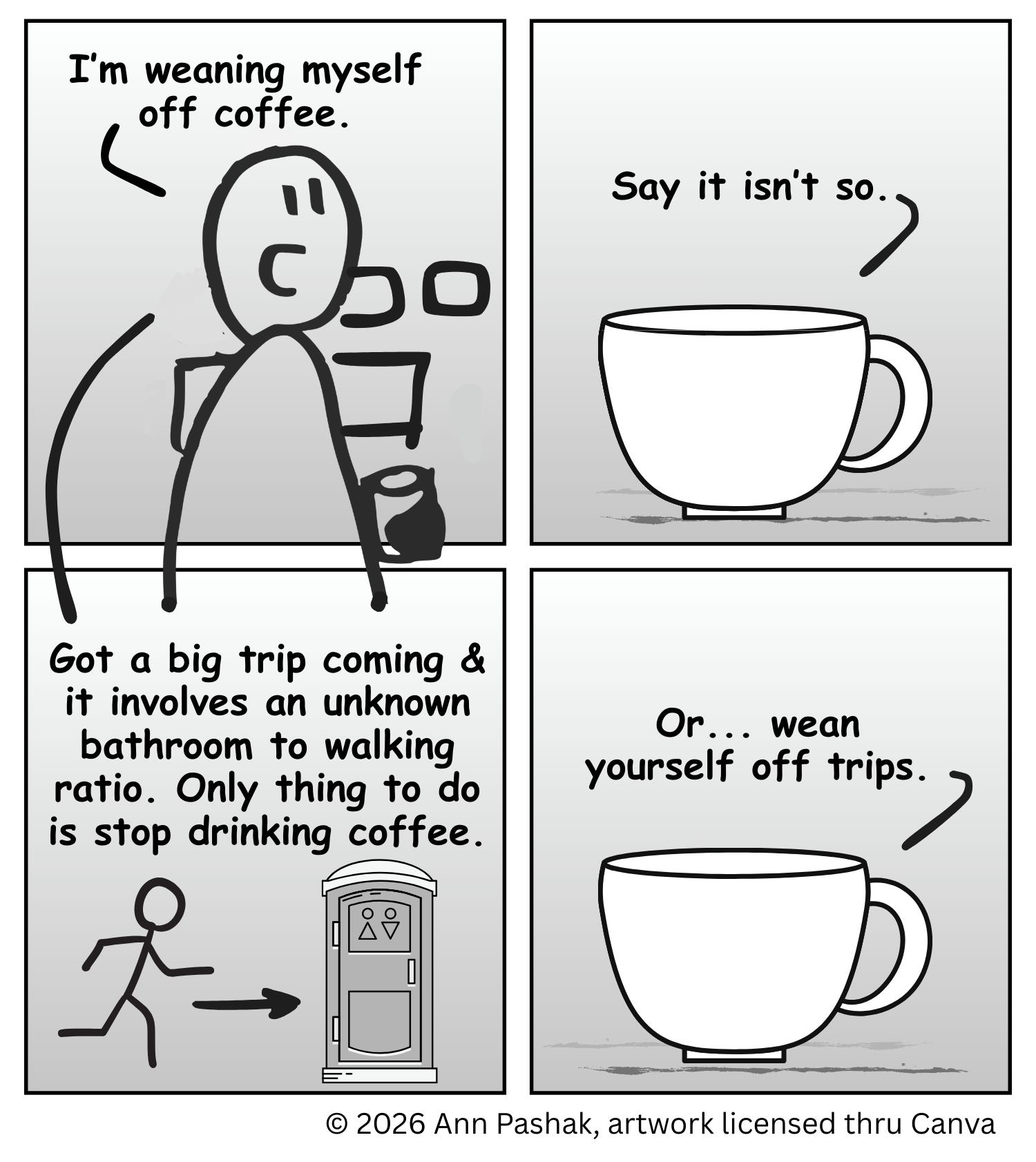 I give up coffee when I travel, that’s 100% true, even though I love airplane coffee—it must be the altitude. If the trip involves a lot of walking, like trips to Disney or that amazing one to Spain, I make the sacrifice. Does this also mean that you should avoid me before I go on vacation? Yes, avoid me at all costs. Someone weaning themselves off coffee should wear a warning sign.